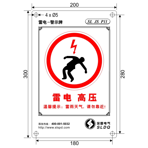 SL JS P11 雷電警示牌專為建筑物容易遭受直擊雷和感應(yīng)雷的區(qū)域范圍而特別設(shè)計(jì),“溫馨提示:雷雨天氣,請(qǐng)勿靠近”。